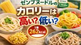 結論から言うと、ゼンブヌードルを単体で「太る食品」あるいは「痩せる食品」と決めつけるのは適切ではありません。現行の公式表示では、丸麺1食(乾麺80g)あたり262kcal、たんぱく質17.0g、食物繊維9.3〜14.2gを含みます。